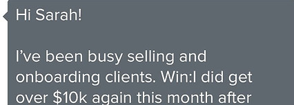 The biggest changes for me came from my social media strategy and my sales strategy. I spend way less time planning posts than before but get significantly more applications to my program on a regular basis. And I am extremely confident on sales calls now because of Sarah.
