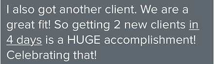 Now I'm 3 months into the program. My time is still limited - however - after applying some of the basic principles she teaches in her program, I've been able to almost double my revenue, plus have started a group program because I was running out of space for 1:1 clients.